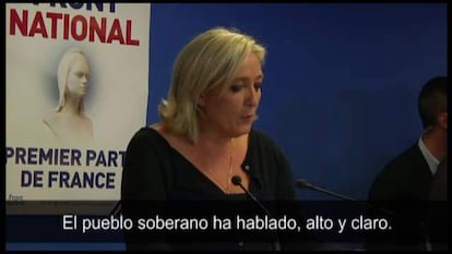 Le Pen, de 44 anos, foi a primeira líder a aparecer na televisão, em uma curta declaração, mais institucional que eufórica, pediu ao presidente da República que tome “as medidas que devem ser impostas para que a Assembleia continue sendo Nacional e represente o povo”. A frase foi uma indireta a François Hollande para que dissolva o Parlamento e convoque novas eleições legislativas.