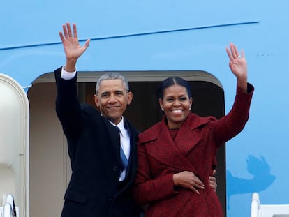 O ex-presidente faz um breve discurso, agora como cidadão, antes de sair de férias para o sul da Califórnia
