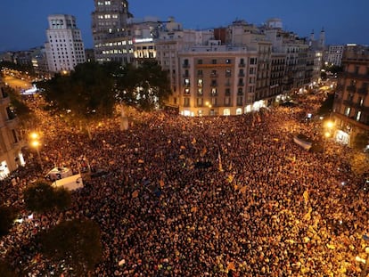 Milhares de pessoas protestam no centro de Barcelona contra a decisão de prender membros do Governo regional que comandavam a organização do plebiscito