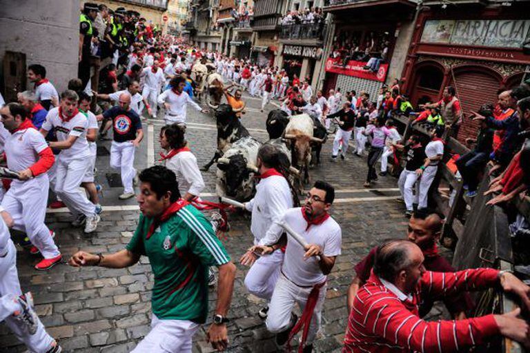 4. Cuidado com os touros que vão soltos. O mais perigoso é o touro solto, tanto o que se adianta à manada e vai atacando, quanto o que fica para trás. Em nenhum caso deve-se incitar o touro ou chamar sua atenção de qualquer forma e por qualquer motivo, no itinerário ou na arena da Plaza de Toros, ou agarrar, fustigar ou maltratar os animais e dificultar, por qualquer ato, sua saída ou corrida. É fácil distinguir os touros dos bois. Estes são maiores e mais ossudos, mais velhos e com os chifres raspados, e usam um sino.