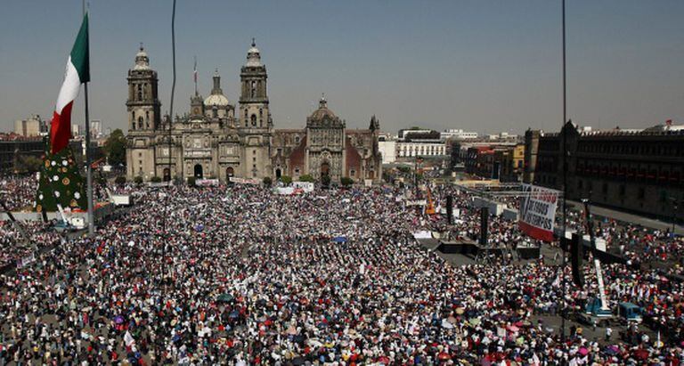 Andrés Manuel López Obrador, ex-candidato à presidência do México, mostrou novamente neste domingo a força que o levou a ser o segundo candidato mais votado nas eleições presidenciais de 2012. O ex-candidato do Partido da Revolução Democrática (PRD, de esquerda) encheu a Praça da Constituição da capital mexicana com milhares de simpatizantes para “evitar o grande assalto”, referindo-se à reforma energética proposta pelo Governo de Enrique Peña Nieto, que abriria a porta ao investimento privado na indústria dos hidrocarbonetos. O político pediu aos assistentes que estivessem prontos para cercar a Câmera de Senadores, Deputados e nos Congressos estatais assim que começar a discussão do pacote de leis, algo que poderia ocorrer na quinta-feira desta semana. O comício coincidido serve de pontapé inicial para uma série de mobilizações que ocorrerão nos próximos dias, lideradas pelos setores radicais e moderados da esquerda para minar o debate destas modificações constitucionais.