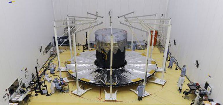 Para o funcionamento do telescópio Gaia é absolutamente imprescindível que se arme, já no espaço, o enorme guarda-sol que o manterá protegido do calor e da luz da estrela. Ele começará a se abrir um par de horas depois do lançamento. “Mede 10,4 metros de diâmetro, aberto, e é formado por 12 folhas, algumas peças de fibra de carbono e a manta térmica com extensores na borda para que fique completamente plano; no total, pesa 125 quilos”, explica Diego Rodríguez, diretor do departamento de espaço da Sener, a empresa espanhola que projetou e construiu essa grande sombrinha. “É a estrutura destacável de uma peça maior que nunca se fez antes em uma missão espacial”, acrescenta. A sombrinha demorará oito minutos para se abrir e é, como dizem os engenheiros, um ponto que pode falhar, quer dizer, se não se estender (pode haver uma segunda tentativa), não há alternativa para salvar a missão.