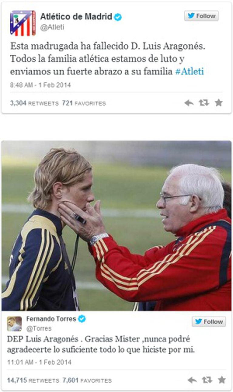 As reações à morte do técnico não demoraram. O Atlético de Madrid foi um dos primeiros clubes que fizeram questão de se despedir do seu ex-treinador. “Nesta madrugada faleceu Luis Aragonés. Todos na família atleticana estamos de luto e enviamos um forte abraço à sua família”, diz o clube em um comunicado nas redes sociais. A Real Federação Espanhola de Futebol também se somou ao adeus ao madrilenho: “A RFEF quer expressar sua dor e consternação pela morte daquele que foi jogador e treinador de futebol em diversos clubes espanhóis e do mundo, e selecionador nacional da Espanha no começo da sua etapa mais gloriosa de conquistas em nível mundial”.