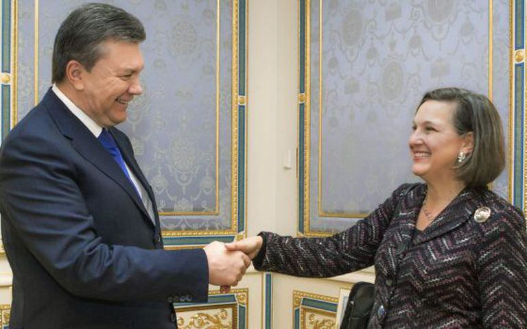 Uma conversa telefônica sobre a Ucrânia entre diplomatas norte-americanos gravada e publicada no Youtube nesta quinta-feira elevou ainda mais a tensão na crise sobre o futuro do país. Na gravação, Vitória Nuland, secretária de Estado para Assuntos Europeus dos EUA, e Geoffrey Pyatt, embaixador norte-americano em Kiev, mantêm uma esclarecedora conversa na que se debate a capacidade de alguns líderes da oposição para participar em um futuro governo ucraniano; discute-se como facilitar que o protesto contra o atual Governo dê certo; e é feita uma referência displicente à União Europeia.