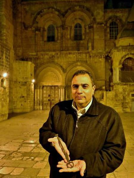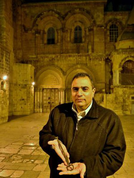 “Esta chave foi dada à minha família por Saladino em pessoa”, garante Adeeb Joudeh. Honrando a ascendência tão antiga, a chave, de 1149, é chata, longa e escura de tão oxidada. Ela abre duas portas formidáveis da Igreja do Santo Sepulcro de Jerusalém, que, segundo a tradição cristã, contém parte da rocha do Calvário, o lugar onde Jesus foi crucificado. Saladino tinha razões para entregar a chave e o controle das portas a famílias muçulmanas. Entre elas, evitar que o templo voltasse novamente às mãos dos cruzadores. Hoje, os descendentes daqueles muçulmanos mantêm a tradição com uma missão igualmente complicada: evitar as brigas entre as várias denominações cristãs que compartilham cada milímetro do solo sagrado.