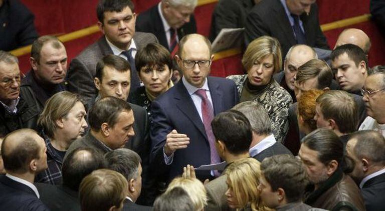 Em frente a ele, Yatseniuk tinha a força dos deputados do principal partido na oposição, o de Yulia Tymoshenko, Patria, do qual era o líder parlamentar até agora. Pese a que, como diz Victoria Sjumar, uma ativista envolvida no processo de formação do Governo, “o Maidán não é seu ambiente e não era o mais popular”, Yatseniuk era um candidato aceitável para a rua por sua “capacidade de gerenciamento, para dar estabilidade econômica. É um tipo de político muito diferente de seu antecessor, Mikola Azarov, de corte soviético. Yatseniuk é dialogante, consulta, elege a parte da equipe de Governo por sua concorrência”, explica.