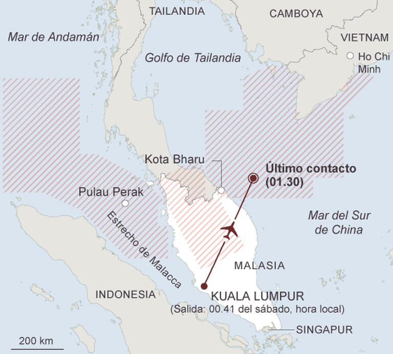 Uma semana após desaparecer dos radares civis quando voava a cerca de 10.000 metros de altitude entre a costa da Malásia e o Vietnã, o aparelho segue sem ser encontrado. Também não foram achados restos, apesar dos inúmeros alarmes falsos, como a localização de manchas de óleo sobre o mar e objetos que pensaram ser portas ou destroços da fuselagem, que em nenhum dos casos pertenciam ao avião.