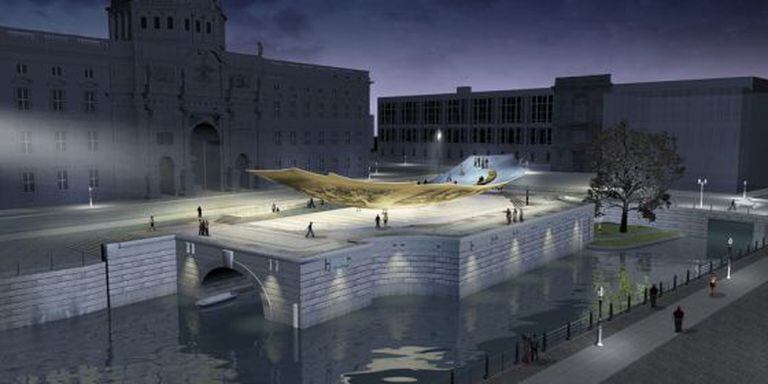No local eleito para o monumento, desenhado por Johannes Milla, uma enorme plataforma de aço e cristal ondulante titulada Cidadãos em movimento, os berlinenses só encontram agora uma velha ruína de pedra rodeada por grades que impedem avista os seus alicerces. Dois trabalhadores, que fumam alegremente à espera de uma ordem que nunca chega, admitem que os trabalhos de modernização ainda não podem começar por causa de um problema legal que ninguém sabe como resolver e que mantém em estado de alerta a ministra da Cultura, Monika Grütters.