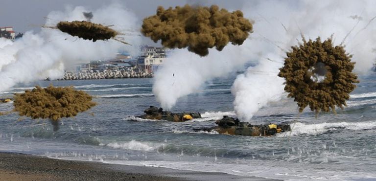 A fronteira entre as duas Coreias –uma das mais armadas do mundo- ficou sacudida de novo, nesta segunda-feira, pela tensão vivida pelos dois países. Pyongyang realizou alguns exercícios militares com fogo para o mar poucas horas depois de ter avisado Seul, e a Coreia do Sul respondeu com granadas e o envio de aviões de combate, e evacuou para os refúgios subterrâneos os residentes de uma ilha próxima à fronteira marítima em disputa.