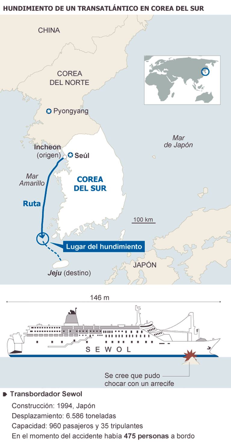O naufrágio do Sewol, que mantém a todo o país em vilo desde a quarta-feira, é uma das maiores tragédias humanas da história de Corea del Sur em tempos de paz.
