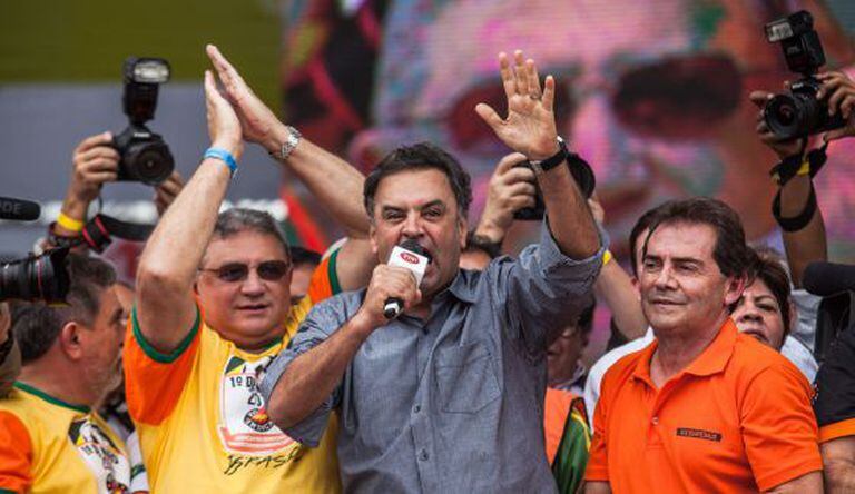 Já Aécio Neves (PSDB), para quem Paulinho pediu votos, chamou a gestão petista de patética, disse que Dilma estava fazendo um balcão de negócios com a Petrobras, e fez duas promessas que, na verdade, ninguém sabe se conseguirá cumprir: acabar com a inflação e voltar ao mesmo ato da Força em 2015 como presidente. “Quem quer estar ao lado do trabalhador não vem aqui só a cada quatro anos. Eu estou aqui com vocês”, disse. Nessa hora, parte dos espectadores vaiava, parte aplaudia e a maioria não fazia nada. Segundo a pesquisa do instituto MDA, para a Confederação Nacional do Transporte (CNT), divulgada na semana passada, Neves teria subido de 17% das intenções de voto em fevereiro, para 21% neste mês, enquanto a presidenta caiu de 43,7% para 37%.