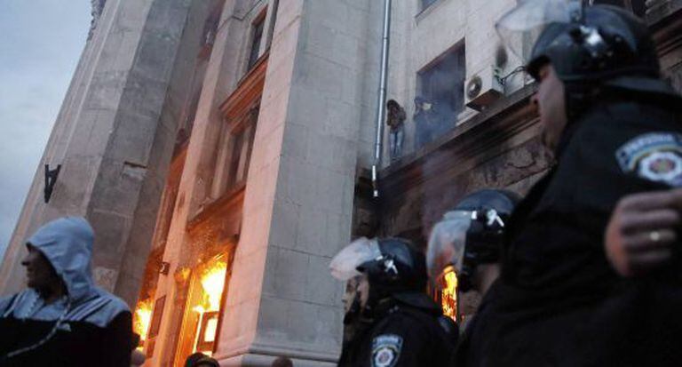 O incêndio de um edifício durante os confrontos em Odessa deixa 36 mortos