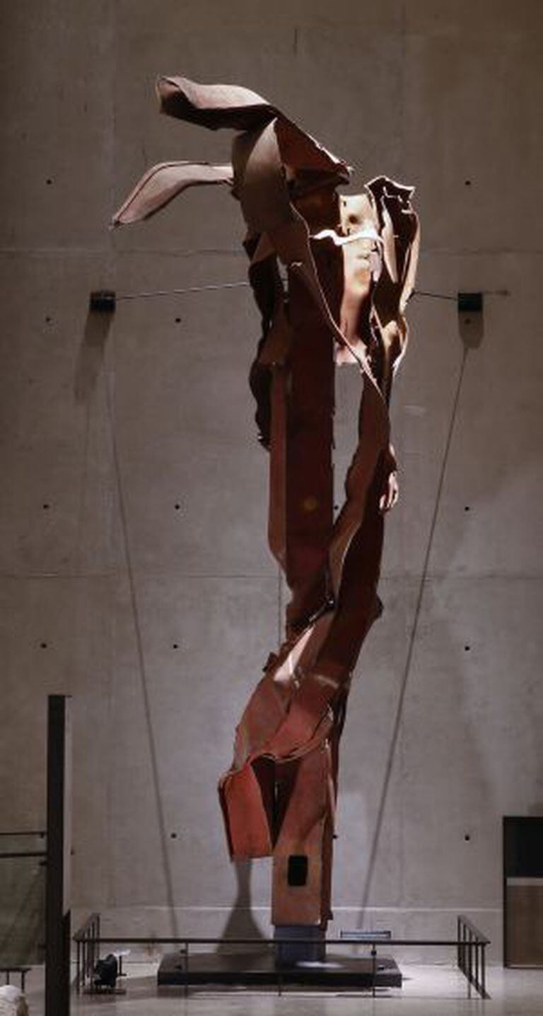 Ali começa a descida. Da luz do pavilhão principal se passa à escuridão da profundidade. Tudo vai se apresentando pouco a pouco, para que o visitante vá se acostumando ao espaço. O primeiro escombro com que o visitante se encontra é um duplo tridente de aço enferrujado, um elemento estrutural que dava sustentação à fachada da Torre Norte. Na exposição há outra coluna que tecia o exterior do arranha-céu, completamente retorcida pela força do impacto de um dos dois aviões usados como projéteis.