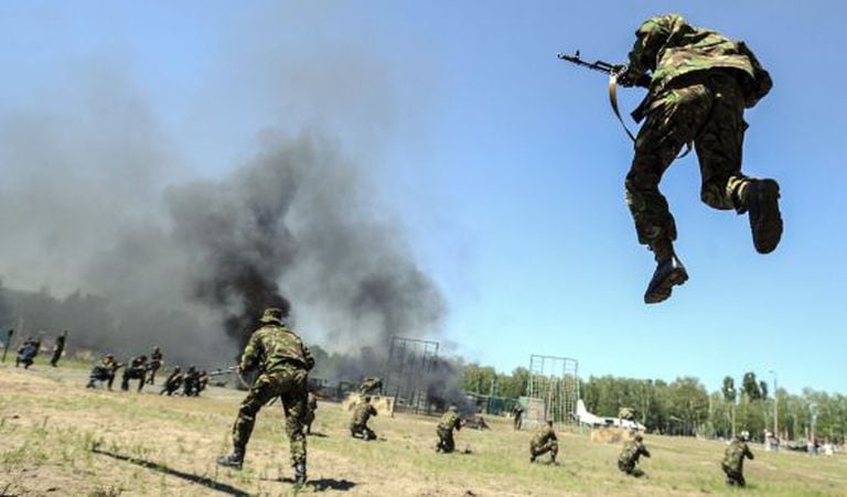Uma dezena homens de diferentes idades em roupa de camuflagem desliza em sigilo pelo pátio de um antigo acampamento infantil de veraneio, com a intenção de invadir as instalações abandonadas dos “pioneiros”, a organização que agrupava e educava crianças na União Soviética. Estamos em um bosque, 10 quilômetros ao noroeste de Kiev, em um “centro de treinamento” onde acontecem “cursos acelerados” de cinco dias para quem deseja se formar em técnicas de combate. O chefe do acampamento, que se apresenta como Viacheslav, concordou em falar conosco, graças a um veterano do Afeganistão que conhecemos por sua participação no Maidan (a revolução contra o regime do Viktor Yanukovich). O veterano responde agora pela intendência destas instalações.