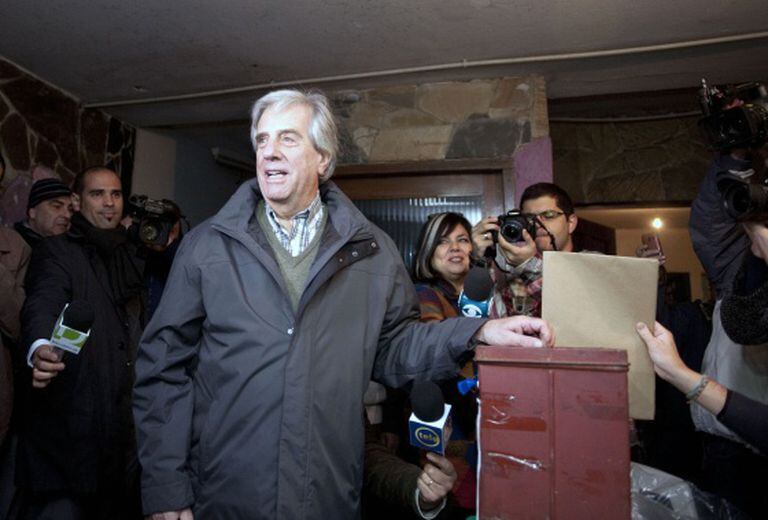 O primeiro a votar no domingo foi o presidente Mujica, que saiu muito cedo de sua chácara em uma estranha comitiva, composta por seu Fusca azul, um carro com escolta e vários veículos da imprensa. Votou em um colégio eleitoral de Montevidéu em um dos dois candidatos da FA, à qual pertence, e na saída declarou aos jornalistas que estava encantado com o processo de sucessão. “Não vejo a hora de tirar os sapatos que me apertam”, disse.