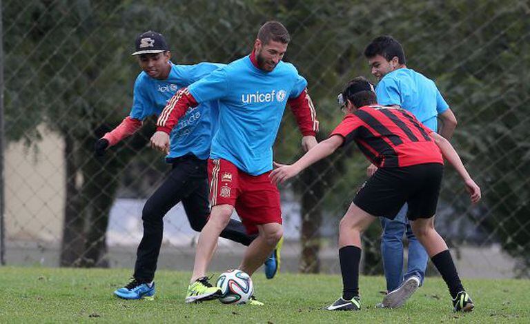 A uns 10 graus de temperatura e com uma umidade de 88%, a Espanha se abriga como pode numa concentração que parece ficar na Galícia: no meio do nada, nos arredores de Curitiba, onde a televisão repete incessantemente imagens das inundações dos últimos dias no Estado do Paraná. Enquanto isso, a Holanda, seu primeiro rival, tira a roupa na praia da Ipanema, com 30 graus. Há outros contrastes. O Brasil tem seu bunker a cerca de cem quilômetros do Rio, ao passo que a Alemanha dança em aldeias indígenas da Bahia, e os ingleses visitam favelas cariocas. Outras seleções estão preocupadas. A Argentina inteira cobre Messi com seu manto e se empapuça de doce de leite perto de Belo Horizonte, e no convívio de Portugal não tiram o olho da Virgem de Fátima, por dois motivos: as lesões de Cristiano Ronaldo e a epidemia de dengue que assola a região da sua concentração, na cidade paulista de Campinas, com 35.000 vítimas desde o começo do ano.
