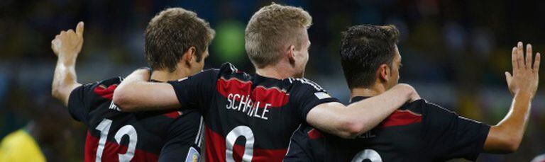 A outra ode ao jogo moderno é simbolizada por Müller. Desajeitado e com ar indiferente, onipresente, move-se por toda a frente de ataque de modo furtivo, mas sempre aparece. Diante do Brasil, partindo do flanco direito como um falso aríete, canalizou 45% das investidas de sua equipe e percorreu 11,5 quilômetros; no outro lado, Özil só concentrou 20%. Na terça-feira, em Belo Horizonte, Müller voltou a cravar seu ferrão para abrir caminho. Já soma cinco gols no torneio — é o segundo artilheiro, atrás de James Rodríguez, com uma média de 0,83 por partida —, um total de 10 na Copa do Mundo com seus 24 anos. Ao seu lado, dois atores secundários como Klose e Schürrle encarnam também a eficiência germânica. Silenciosamente, o primeiro marcou seu 16º gol em Copas do Mundo para quebrar o recorde de Ronaldo e o segundo, assíduo no banco, acumula já três em apenas 156 minutos sobre o gramado (uma média de 0,6).