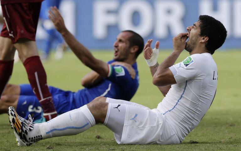 - A mordida de Luis Suárez. Reincidente em duas ocasiões anteriores, o atacante uruguaio não conseguiu se conter e saltou sobre as costas do meio-campo Chiellini para mordê-lo. A imagem deu a volta ao mundo e a FIFA esperou alguns dias para aplicar-lhe uma sanção exemplar: oito partidas internacionais e quatro meses expulso do futebol. A dureza da sanção contrastou com a impunidade de outros casos, como o de Matuidi ao romper a tíbia de Onazi em uma entrada duríssima ou o do colombiano Zúñiga, que quebrou uma vértebra de Neymar com uma joelhada.
