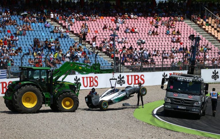 A supressão do FRIC, um sistema que garante a estabilidade do carro ao frear, parece ter causado algum prejuízo à equipe da Mercedes. Mas não o suficiente para perder o domínio que exerce até agora nos treinos classificatórios e nas corridas disputadas. Hamilton sofreu um acidente e ficou fora da luta pela pole position em Hockenheim. Mas seu companheiro de equipe, Nico Rosberg, fez valer o potencial do carro e o pilotou com precisão para obter a primeira posição no grid de largada. Seu tempo de 1 m e 16.5 s foi o melhor do fim de semana e permitiu que ele superasse Valteri Bottas (da Williams) por apenas dois décimos e Felipe Massa (também da Williams) por cinco. Esta é a nona pole de Rosberg, a quinta desta temporada.