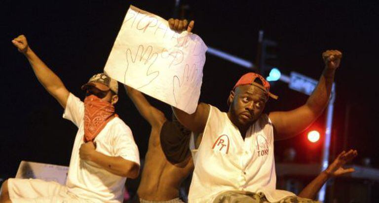 Na sexta-feira à tarde, a indignação de Anthony e outros moradores diante da acusação de roubo pressagiava que os protestos noturnos seriam menos festivos e mais reivindicativos do que os da noite anterior. A decisão de retirar, nesse dia, a polícia local de Ferguson e substituí-la por agentes estaduais comandados por um chefe negro apaziguou os ânimos. Os 50 policiais – majoritariamente brancos, com equipamento militar, rifles e provisões de gás lacrimogêneo – e seus veículos blindados foram substituídos por poucos membros das forças de segurança a pé que conversavam com os manifestantes.