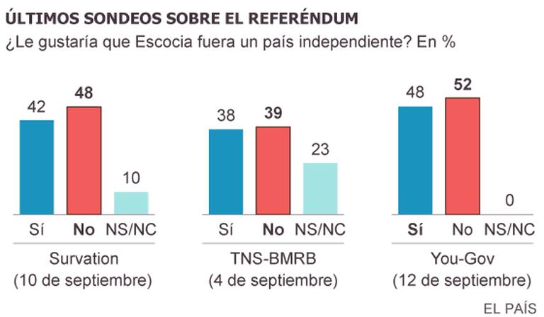 Foi preciso menos de uma semana de endurecimento da campanha para que o unionismo tenha voltado a se colocar à frente nas pesquisas de YouGov, a consultora que colocou fogo no referendo escocês no último domingo ao mostrar, pela primeira vez, o sim na frente com 51% contra 49%. Sua última pesquisa mostra agora o não com 52% e o sim com 48%. Isso significa uma mudança de tendência: pela primeira vez nas últimas semanas, o não conseguindo quebrar o crescimento do sim.