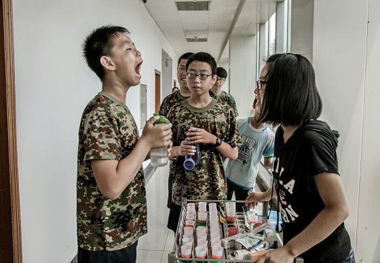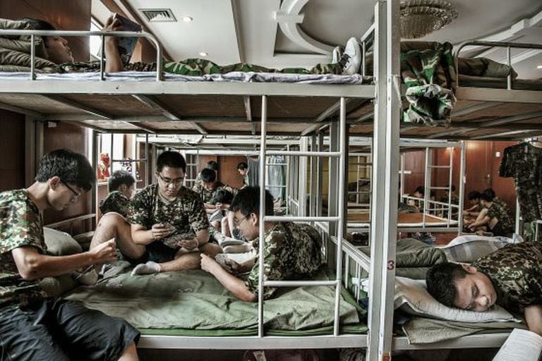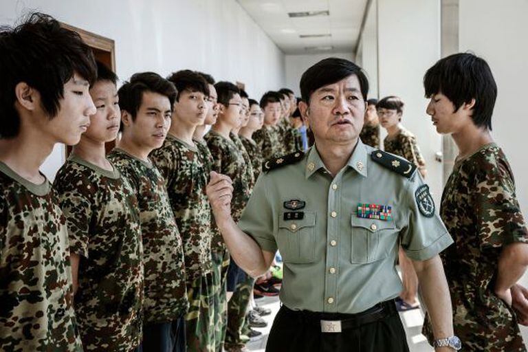 O dia começa com um apito agudo às 6:30. Os meninos pulam dos beliches e, vestidos com camisetas de camuflagem, formam uma fila no corredor externo. Um dos monitores, com cara de poucos amigos e voz de sargento de ferro, vai gritando os nomes de todos eles. “Presente!”. A cena se repete outras cinco vezes durante o dia e sempre é fácil reconhecer os novos. São desafiadores: chegam tarde e se recusam a acatar as ordens. Suspiram enfastiados, olham para o outro lado e terminam respondendo com desânimo. Mas o desdém dura pouco. Têm 20 minutos para a higiene pessoal e para descer ao pátio, onde lhes espera a primeira dose de treinamento militar a 30 graus e sob a persistente camada de polução da capital chinesa.