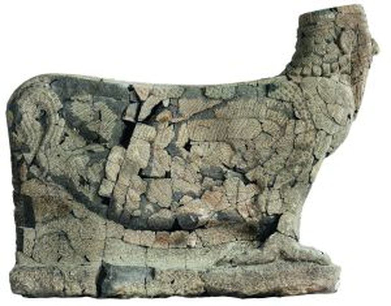 Entre as peças mais chamativas, uma das clássicas estátuas de criaturas híbridas do Oriente Médio. Neste caso, um homem que é também pássaro e escorpião. A peça está bastante deteriorada, reconstruída a partir de muitos pedaços. Mas não foram os séculos os responsáveis por essa destruição, e sim as guerras modernas. Achada no sítio arqueológico de Tell Halaf, no nordeste de Síria, pelo barão alemão Max von Oppenheim, a estátua foi guardada em um museu do Berlim em 1928. Anos depois, em 1943, durante a Segunda Guerra Mundial, uma bomba incendiária lançada por um avião aliado devastou o lugar. A alta temperatura e seu contraste com a água usada pelos bombeiros para apagar as chamas fizeram com que muitas das peças se quebrassem em vários pedaços.