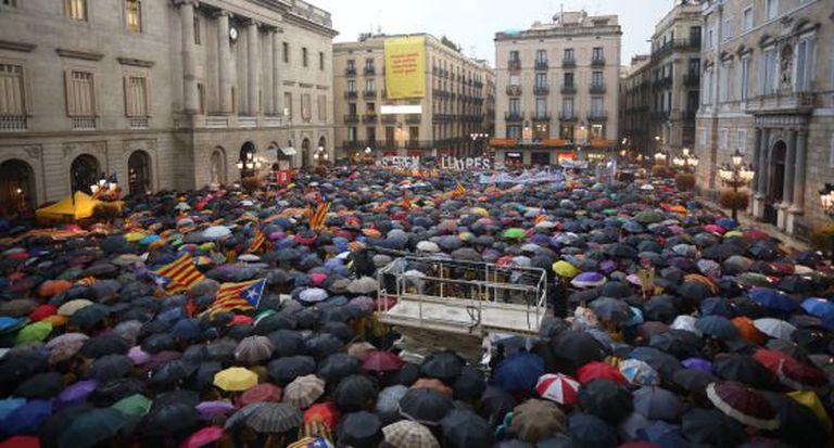Barcelona foi palco da manifestação mais numerosa. A convocação era para às 19h (14h, no horário de Brasília) mas a praça de Sant Jaume já estava lotada 20 minutos antes da hora. A chuva não afastou os participantes, que não paravam de gritar: “Votem! Independência!”. Protegendo-se com guarda-chuvas, vestidos com camisetas amarelas e portando cartazes, os manifestantes encheram a praça Sant Jaume. Em uma esquina da praça está instalado um relógio com a conta dos dias, horas e minutos que faltam para a realização da consulta. Sobre ele, os independentistas colocaram um cartaz no qual se lê, em catalão: “Um país pequeno que entre todos nós faremos muito grande”. Vários dos manifestantes portavam grandes urnas de papelão e alguns traziam por cima dos guarda-chuvas letras gigantes nas quais se lê: “Seremos livres”.