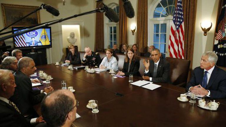 Com os índices de aprovação mais baixos de seu mandato, o presidente suspendeu por dois dias suas viagens para arrecadar fundos para os candidatos democratas que disputam as eleições de meio de mandato marcadas para 4 de novembro. Na quarta-feira, Barack Obama se reuniu com os membros de seu Gabinete que têm responsabilidade direta na luta contra a propagação do vírus na África Ocidental e sua chegada aos Estados Unidos. Na quinta-feira, o mandatário ficou na Casa Branca para supervisionar a resposta de seu Governo à crise do ebola, deixando de ir a Rhode Island e a Nova York para comícios.