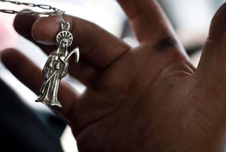 11. Existe merchandising. Como pendurar um crucifixo no pescoço ou vestir uma camisa do Ramones. Há pingentes, correntes, brincos, mochilas. Mas com a Santa Morte.