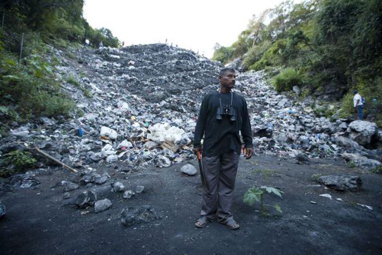 O ancião indígena olha os visitantes com desconfiança e então lhes aponta o caminho até o lixão. Como tantos outros lugares em Guerrero, é um território proibido. Ninguém se aproxima dali. E todos sabem por quê. Mas nesta tarde alguma coisa mudou. Pelo caminho, um conjunto desordenado de veículos aponta. Começou a anoitecer e percebe-se que têm pressa. Cerca de dez homens, muitos policiais comunitários, descem rapidamente e olham com prevenção o carro dos jornalistas, estacionado junto ao lixão. Entre eles, estão os pais de dois estudantes. Vieram reconhecer o terreno. Os dois familiares, escoltados por policiais comunitários, se aproximam a passo lento do abismo. De pé, sobre o lixo, miram o vazio. Por um instante, parecem derrotados, absorvidos pelo negrume das cinzas. Logo, um deles sussurra: “Não pode ser, meu filho continua vivo”.