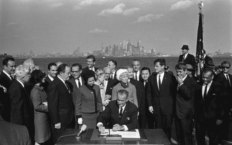 Johnson negligenciou o conselho do assessor que lhe recomendava evitar falar dos direitos civis em seu primeiro discurso para um Congresso traumatizado pela morte de Kennedy. Falou de direitos civis e acabou assinando leis que transformaram os Estados Unidos, como a que criou uma cobertura médica pública para maiores de 65 anos e pessoas com renda mais baixa, a que acabou com o sistema discriminatório de cotas para imigrantes ou a que colocou fim à segregação legal. “Já falamos bastante nesse país sobre direitos iguais. Falamos durante cem anos ou mais. É hora de escrever um novo capítulo e de escrevê-lo nos livros da lei”, disse.