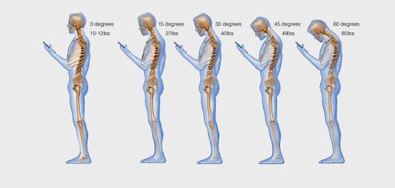“Comecei a reparar na postura ao ver muitos jovens entrando no meu consultório com dores no pescoço e nas costas”, explica por e-mail o autor, chefe de medicina cervical em um hospital nova-iorquino. Seu estudo pega os diferentes graus de inclinação de cabeça e pescoço, “com um peso médio de seis quilos e o centro de massa situado a 15 centímetros do alto da cabeça”. Após contratar engenheiros para desenvolver um software, foram realizados cálculos em newtons que depois foram convertidos para medidas de peso, mais compreensíveis para o grande público.