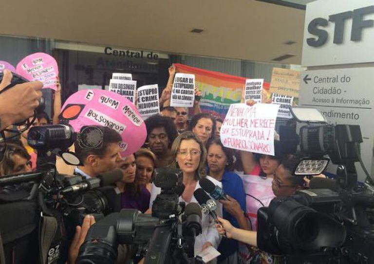 É a segunda vez que Bolsonaro, o quarto deputado mais votado do Brasil, grita publicamente a mesma coisa à parlamentar petista. A primeira foi em 2003, em uma discussão diante de jornalistas, quando também a empurrou e levantou a mão contra ela enquanto a chamava de “vagabunda”. Naquela ocasião, foi aberto também um processo de quebra de decoro parlamentar, que foi arquivado, mas, desta vez, pode lhe custar de três a seis meses de detenção e multa, no caso do crime por incitação pública ao estupro, ou até dois anos, no caso de ser condenado por calúnia. O deputado, longe de retificar, ratificou suas declarações. O EL PAÍS ligou várias vezes para o parlamentar, mas não conseguiu ouvi-lo.