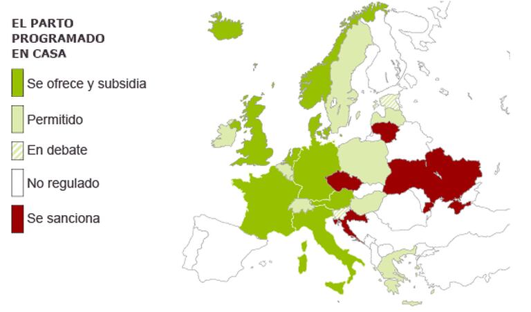 Ou seja, na Europa, dependendo de onde a grávida morar, ela poderá ou não escolher onde pode parir. Os regulamentos e recomendações são divergentes. Há países que estimulam e financiam, outros oferecem (embora não necessariamente aconselhem), outros toleram e alguns poucos impõem restrições explícitas.