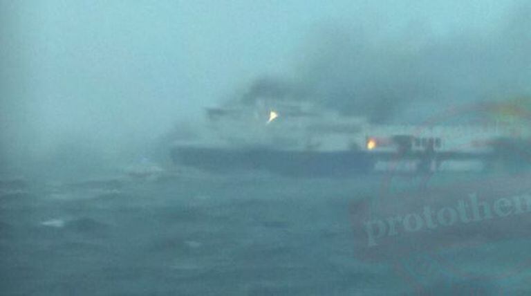 Uma balsa com 466 passageiros a bordo que viajava entre a cidade grega de Patras e Ancona (Itália) sofreu um incêndio na madrugada de domingo quando estava a 45 milhas náuticas a noroeste da cidade de Corfú. Uma operação de resgate foi iniciada para evacuar os passageiros e tripulantes que estavam a bordo do Norman Atlantic, com bandeira italiana. Embora o incêndio esteja controlado, o fogo persiste e a balsa ainda está à deriva. A tempestade no mar Adriático, com ondas de até sete metros, dificulta o acesso à balsa. Fora de controle, a força do mar empurra a embarcação em chamas em direção à costa da Albânia, segundo informações das autoridades da equipe de resgate.