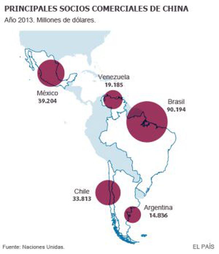 Embora o comércio bilateral entre a China e os membros da Celac tenha praticamente multiplicado por dez em uma década (Pequim é o segundo parceiro comercial da região depois dos Estados Unidos, com um volume de 260 bilhões de dólares), o padrão continua o mesmo: a América Latina vende matérias primas e recursos energéticos e o gigante asiático envia produtos manufaturados. A China pretende dobrar a cifra para 500 bilhões na próxima década. “Serão necessários muitos esforços para alcançar essa meta, já que o comércio já não cresce tanto como em anos anteriores devido à crise econômica”, considera Xu Shicheng, pesquisador do Instituto da América Latina da Academia Chinesa de Ciências Sociais (CASS). Equador, Venezuela, Chile e Peru são alguns dos países com forte dependência comercial da China, que se evidenciou depois da desaceleração da segunda economia, a queda dos preços das matérias primas, especialmente do petróleo.