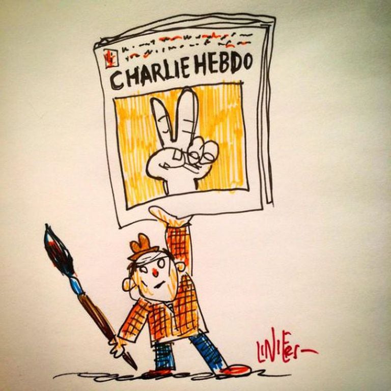 O quadrinista argentino Ricardo Liniers publicou no twitter desenhos de apoio à revista francesa e criticando o fanatismo. "Meu fanatismo é por não ser fanático", diz uma de suas ilustrações.