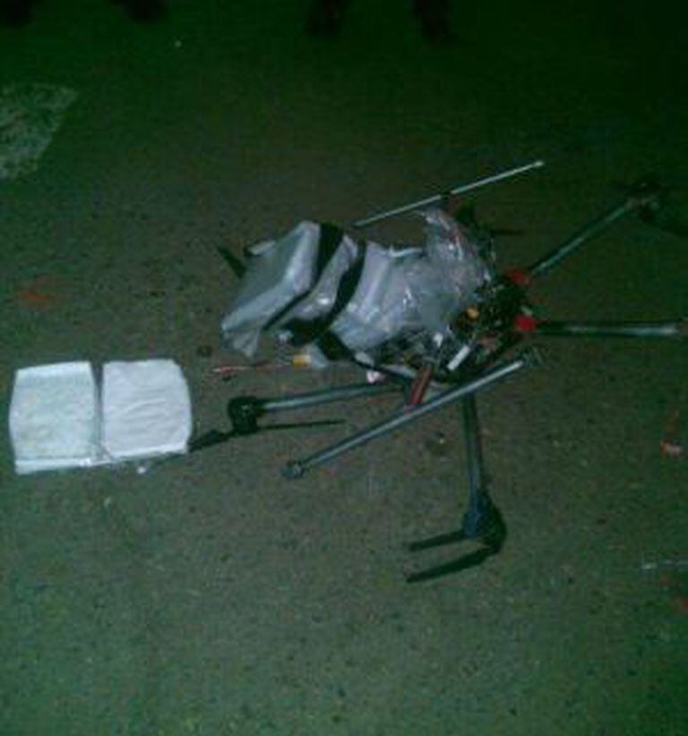 Durante a noite de quarta-feira agentes da Policia Municipal de Tijuana encontraram um desses artefatos espatifado perto da entrada de um supermercado da cidade, situada na fronteira. O drone estava carregado com três quilos de droga sintética, conhecida como cristal, presa em sua parte central com fita adesiva preta, sua única amarração. Os ideólogos do plano parece que não levaram em conta que o aparelho não aguentaria o peso. E caiu.