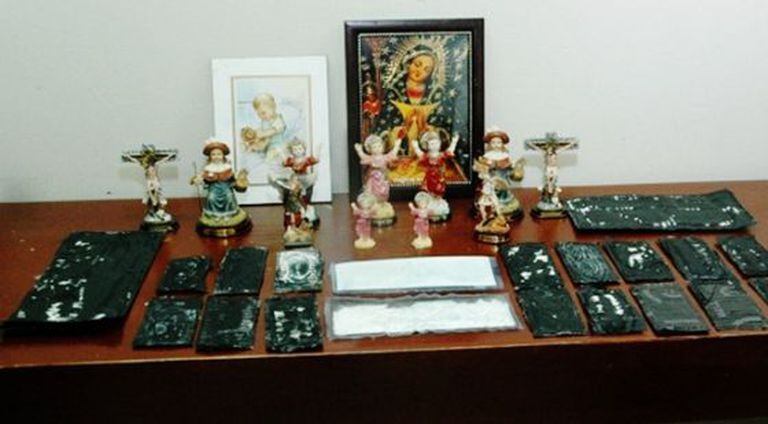 Santos: O uso de imagens religiosas para esconder droga é comum, especialmente cocaína. Em dezembro de 2012, a polícia de Santo Domingo revistou uma casa e encontrou estes objetos. Havia vários mexicanos envolvidos no caso. O surpreendente é que muitas vezes as imagens não levam a droga escondida em seu interior, mas são feitas à base de cocaína.