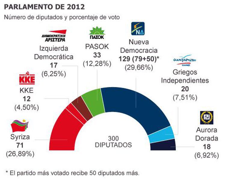 A mudança, uma mudança histórica, entrou em curso neste domingo na Grécia com a vitória do partido de esquerda Syriza, com 36,3% dos votos e 149 assentos, beirando a maioria absoluta, sobre a conservadora Nova Democracia, do atual primeiro-ministro, Andonis Samarás, que obteve 27,8% dos votos (76 deputados), números referentes a 99,8% das cédulas contabilizadas. O terceiro lugar ficou para o partido neonazista Aurora Dourada, com porcentagem semelhante à de 2012 (6,3%, 17 eleitos). Cenário inquietante, porque se o Syriza não atingir os 151 assentos que lhe dariam a maioria absoluta, mesmo que precária, e os dois primeiros partidos não conseguirem formar o Governo, o mandato caberá aos neonazistas, de uma formação abertamente contra o sistema e que tem sua cúpula diretora no cárcere por associação para o crime.