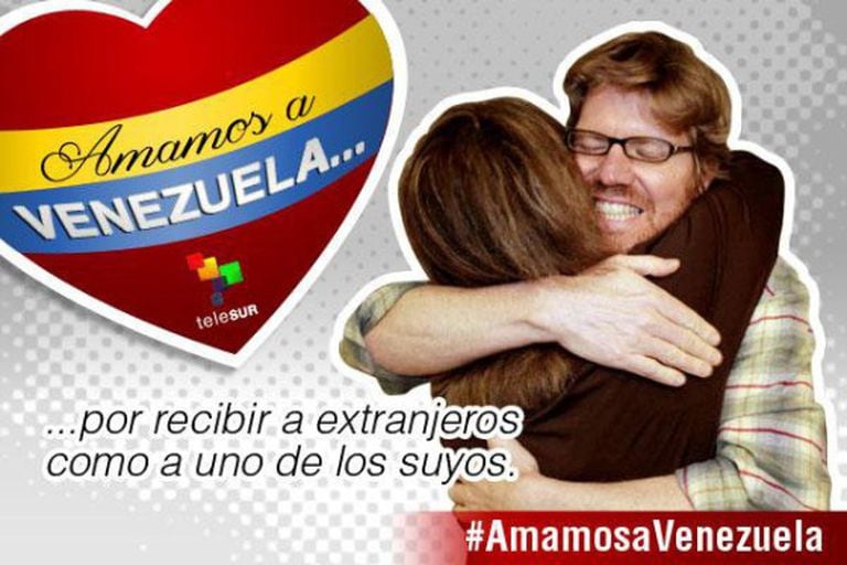 “Amamos a Venezuela... por receber estrangeiros como um dos seus”. Na imagem, um casal se abraça sobre esse lema para uma campanha estatal da televisão pública Telesur. A iniciativa publicitária não teria nada de particular se não fosse pelo fato da pessoa que aparece na imagem não ser um turista, mas Jim Wyss, jornalista do jornal Miami Herald, que foi detido durante 48 horas pelas autoridades venezuelanas em novembro de 2013.