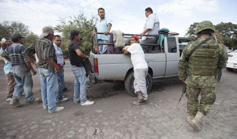 Na entrada de Tepalcatepec (15.000 habitantes), sob um empoeirado todo azul de Cervejas Corona, Isauro Birrueta Rodríguez está preparando uma sopa sobre umas brasas. Acaba de colocar milho e pimenta na caldeira e parece estar com fome. Na altura do cinto aparece a barriga e a Beretta 9 milímetros. Foi pecuarista, autodefesa e agora pertence à força rural. Com seus companheiros de posto, vigia em um destroçado banco de automóvel, um dos poucos municípios onde esta nova polícia parece funcionar. No último ano não tiveram nenhum enfrentamento grave. E ao contrário de outros lugares, conseguiram se blindar (ao menos aparentemente) contra os narcos. Mas nenhum deles está muito contente. Não têm dinheiro para gasolina, nem para gastos de munição, nem sequer para o uniforme.