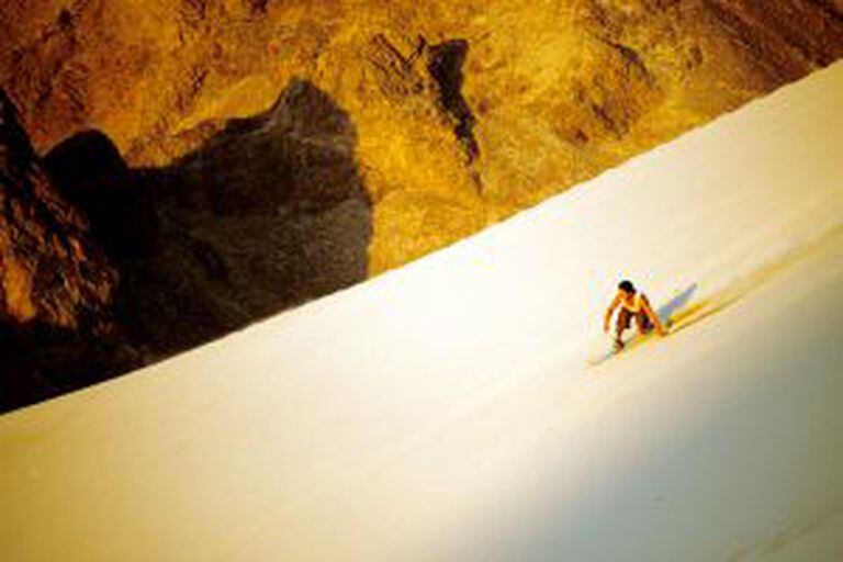 O sandboard é o snowboard dos que odeiam o frio, uma experiência única que nos fará aproveitaras areia do deserto como nunca feito antes. Nossa proposta é praticá-lo no deserto de Sechura, em Cerro Blanco (Peru), perto das enigmáticas linhas de Nazca. Estamos de pé, à beira do precipício, com os nervos à flor da pele, preparados para nos atirar sobre uma prancha de sandboard em uma ladeira de areia fina. Com seus 1.176 metros de altura, a duna Cerro Blanco, no vale de Las Trancas, é a mais alta do mundo, e há somente uma forma de vê-la: a toda velocidade, com os pés sobre uma prancha e os olhos cobertos por óculos de proteção.