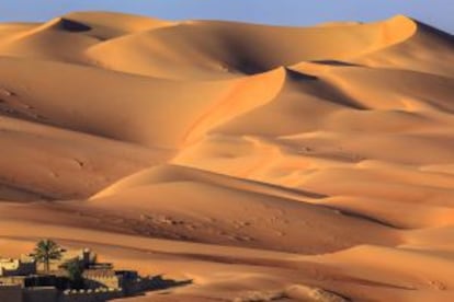 Os melhores países para contratar passeios em camelo no Rub al-Jali são Omã e Emirados Árabes.