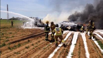 Pouco depois de avisar no voo à torre de controle de problemas, o avião bateu em uma torre de alta voltagem. No local agora se veem uma montanha de cinzas, uma parte da torre de eletricidade derrubada, o cabo contra o qual colidiu o avião e os destroços da aeronave espalhados pelo campo, entre eles as rodas. Uma das primeiras pessoas a chegar ao lugar do acidente assegurou que “quase todo o avião virou cinzas”. A Unidade Orgânica da Polícia Judicial da Guarda Civil está encarregada da investigação.
