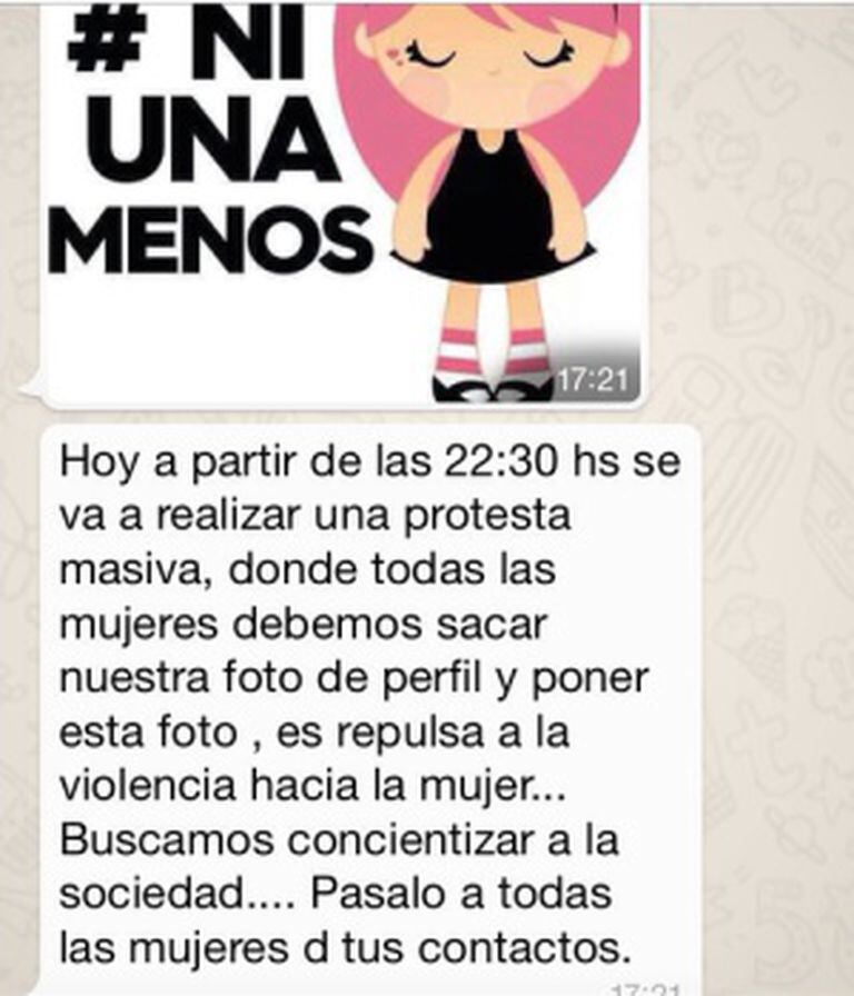 Vários de seus contatos femininos no WhatsApp talvez tenham trocado, nos últimos dias, a foto de perfil pelo desenho de uma boneca acompanhada pela frase #NiUnaMenos (nenhuma a menos). E talvez você tenha visto publicações no Facebook pedindo que não haja mais mulheres mortas por violência machista na Argentina. São duas coisas relacionadas, embora possivelmente não saiba. Esta é a história de uma campanha contra o feminicídio que terminou em uma guerra de acusações em seu WhatsApp.