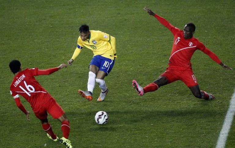 Neymar sempre passa a sensação de estar um degrau acima dos demais: frequentemente espetacular, às vezes desnecessariamente brincalhão, veloz e imaginativo, segue sendo o único representante indiscutível de um futebol que maravilhou o mundo durante décadas. Neymar tentou 19 dribles, mais do que havia realizado em toda a Copa América de 2011. No segundo tempo, Dunga colocou Douglas Costa no lugar de Tardelli, que não soube aproveitar o caos, e reorganizou a sua equipe com um segundo atacante, Roberto Firmino, uma das esperanças da seleção mais jovem do torneio, mas que não teve muita influência nos 15 minutos em que jogou. Willian teve liberdade quase absoluta na etapa final e foi o melhor homem em campo (com exceção de Neymar, que joga outro esporte) até ficar cansado. O jogo avançava, e o Brasil começava a perdoar. Neymar havia acertado um chute indefensável no travessão. Mas além da partida digna do Peru e de uma sensação geral de descontrole que acompanhou a partida, ela deveria ter sido vencida antes pelo acúmulo de chances de gol. O banco do Peru parecia satisfeito. A estrela do Barcelona perdeu um gol feito aos 44 minutos do segundo tempo, novamente passe de Daniel Alves. Dois minutos depois, inventou um passe magistral entre as linhas defensivas do Peru para Douglas Costas, que teve o trabalho de apenas chutar entre o goleiro estreante Gallese e a trave. Iniesta, seu companheiro de Barcelona, aprovaria.