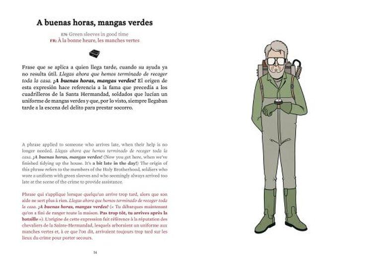 “Cada idioma tem suas expressões feitas”, diz Héloïse, tipo “it’s raining cats and dogs” (está chovendo gatos e cães) em inglês, ou “construire des châteaux en Espagne” (construir castelos na Espanha) em francês, mas me parece que as expressões da linguagem coloquial em castelhano são muito mais cruas e contundentes”. “Além disso”, continua, “me chamou muito a atenção que muitas expressões se relacionem com o escatológico, a comida e a religião. Creio que as expressões populares dizem muito sobre uma cultura, seus tabus e obsessões”. Pense nisso na próxima vez que eles disserem coisas como “hostias como panes” (hóstias como pães) ou “cágate lorito” (cague-se papagaio).