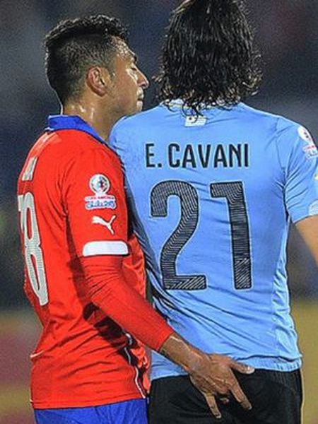 O precedente de Suárez, punido com nove partidas pelo Uruguai e quatro meses de suspensão total por sua mordida em Chiellini na última Copa (outro caso de reincidência), põe em especial evidência o comportamento de Jara, descrito por alguns órgãos da mídia chilena como um simples “oportunismo” (“Deditop’arriba”, com o logo do Facebook, foi a manchete do popular jornal La Cuarta). Cavani, depois de aterrissar na quinta-feira em Montevidéu, afirmou: “É preciso medir tudo com a mesma lupa”. A Celeste, hipersensibilizada pelo castigo desproporcional a Suárez e as duas expulsões da quarta-feira (o lateral direito Fucile e o próprio Cavani), expressou até mesmo dúvidas sobre as futuras arbitragens nas duríssimas eliminatórias para a Copa: Rafael Fernández, vice-presidente da federação, qualificou a ação de “aberrante” e pediu uma “reforma do sistema de escolha dos árbitros”.